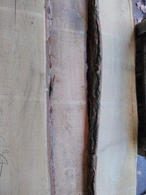Bisher zeigt sich eine schöne dunkle, leicht bläuliche Farbe des Holzes, helle Zonen zeigen sich nur im Kern oder bei den Astansätzen.