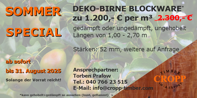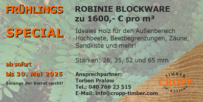Ihr Ansprechpartner: Torben Pralow, Tel.: 040 766 23 515 oder per E-Mail an info@cropp-timber.com.